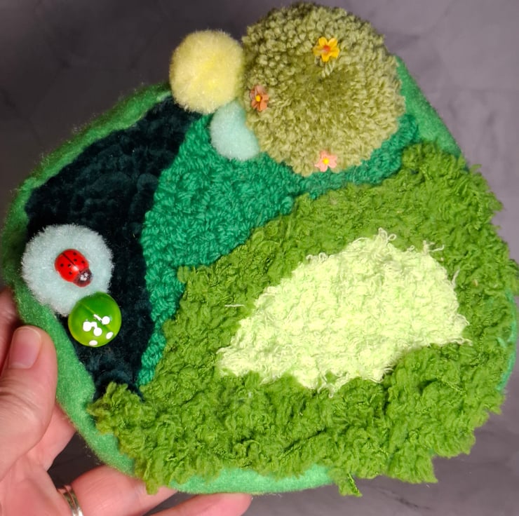 I did these with using punch needle technique (very new to this, this is the third coaster I have made) and sticking on to felt. I really liked how this turned out and will look to do many more designs!