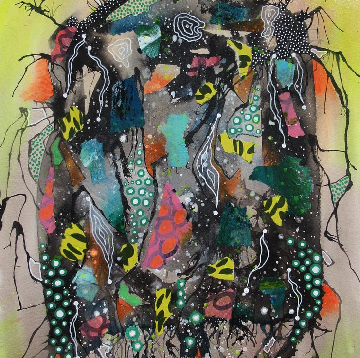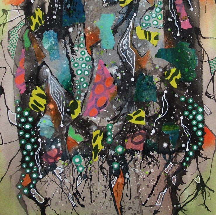 Vigorous abstract painting in watercolour, ink, collage and drawing pens on 10 x 14 inch heavy watercolour paper. Bold and dynamic with gorgeous natural toned colour nuances, ink drifts, rivulets, splashes and drawn details. It will be signed on the front by Bea before dispatch and it comes to you unframed. (Framed photo is for illustrative purposes only.)