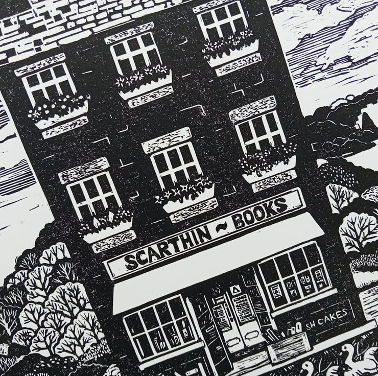 A single colour limited edition lino cut print. Each print is inked and printed by me, from my hand cut lino. Even with a single colour print there can be very slight variations