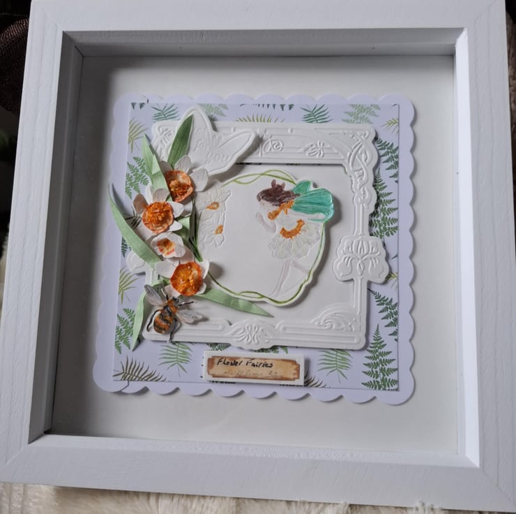 This Exquisite Hand Crafted And Painted 3D Decoupage Art Piece Shows A Scene Of A Fairy Visiting A Spring Narcissus Flowers While A Bumble Bee Accompanies Her With The 3D Decoupage Effect Giving The Scene A Depth And Perseption Of Realisum To Transport You To A Warm Sunny Day In A Fairy Glade Where A Light Breeze Plays Making The Flowers Look Like They Are Dancing To The Unheard Music That Is Carried By The Breeze Where The Fairies And Other Enchanted Folk Dwell, This Exquisite Art Piece Which Is Mounted And In A 23X23cm -9"X9" White Wood Box Frame Giving The Art Piece Depth And Perception, And All Prices Reflect Hours Of Creating The Art Piece And Quality Of Materials Used.