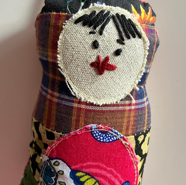 I have a large collection of nesting dolls, I also sew and collect fabric. I started making these for my daughter when she was small to hang around her bedroom. They became more intricate and I began using some of my vintage fabrics and buttons as well as my beautiful scraps from other projects.