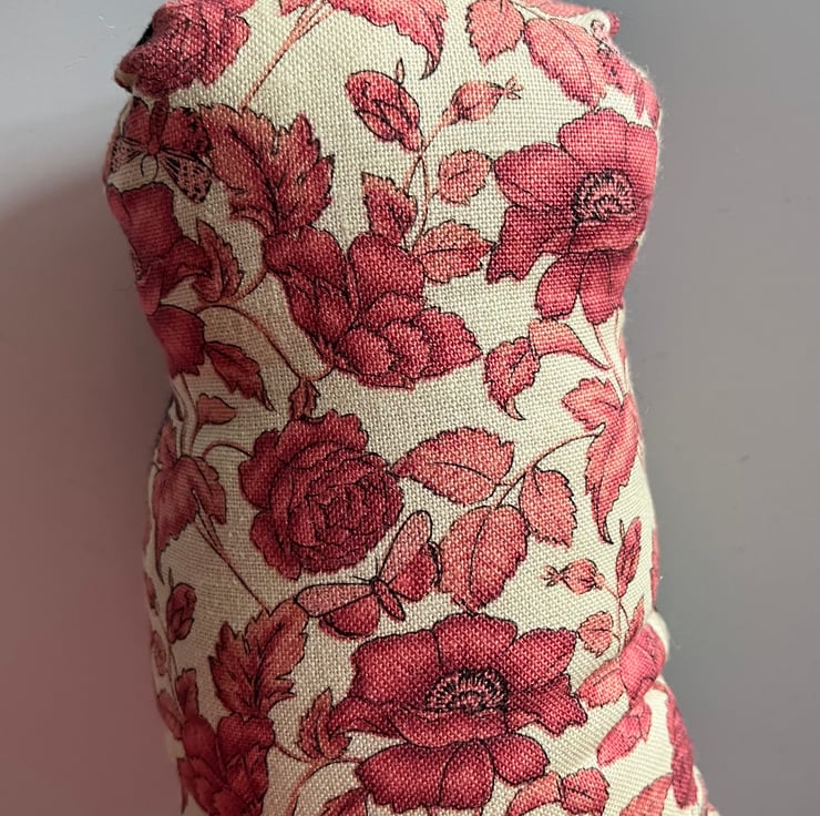 Hand embroidered face and an elephant tummy. The back has vintage flower fabric. Hang anywhere around your home from the twine loop. Approximately 20cm tall and 8cm wide. Stuffed with toy filling.