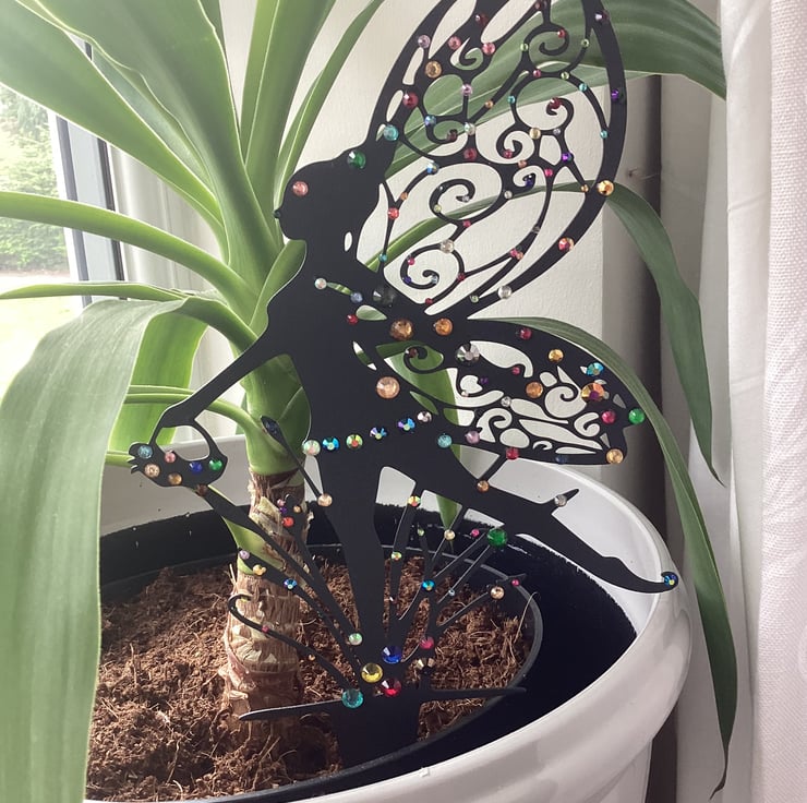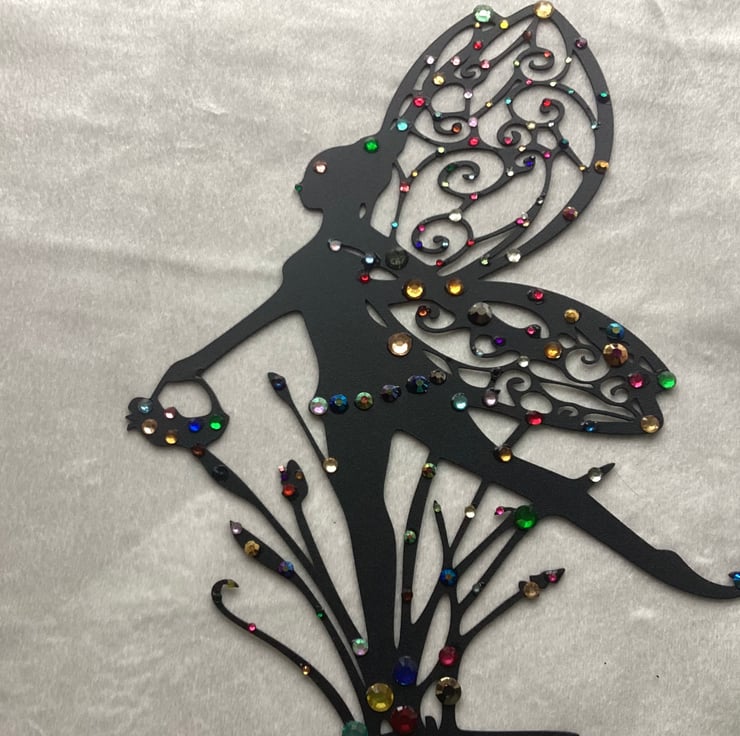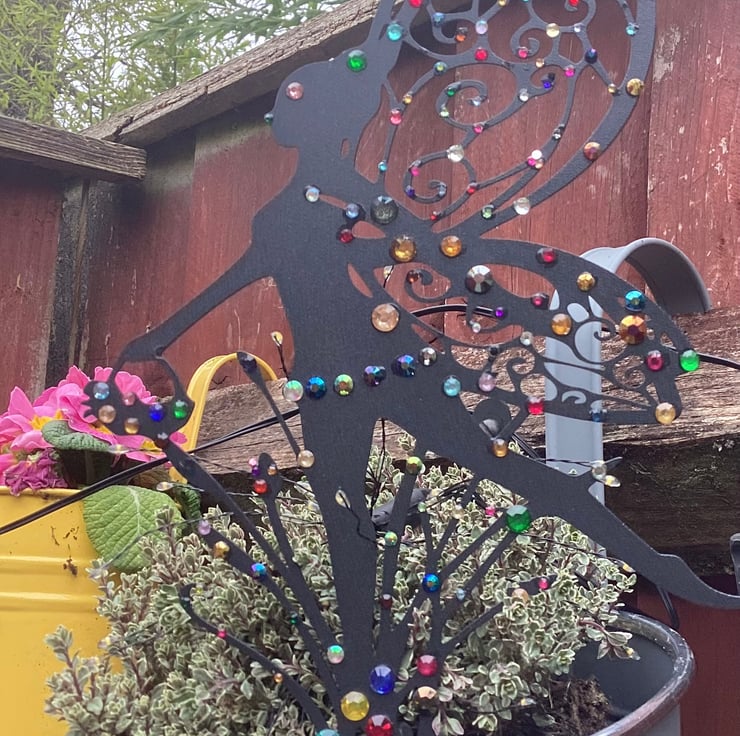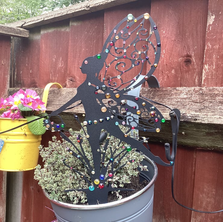 I’ve created this ornament in my home studio in West Midlands. To make it I’ve used metal Fairy garden decoration, embellished it with rhinestones diamanté in different colours . Make a great sun catchers in the garden, plant pots inside or out. Measurements in cm . Colours may slightly vary due to the lighting during the photo shooting or the monitor's display.