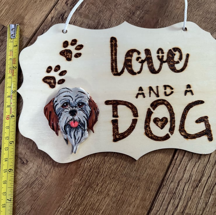 Beautiful hand burned dog plaques, three different sizes and styles. Burned image, felted image of dog/ animal or clay image. Unusual personal gift for pet owners