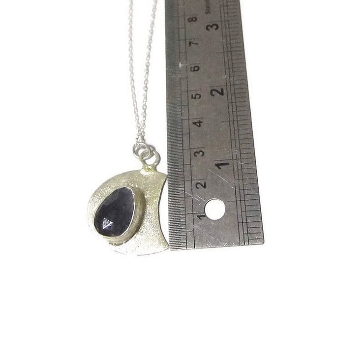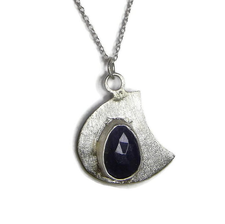 Handmade Rose Cut Iolite Pendant, Sterling Silver Artisan Necklace, gift for her