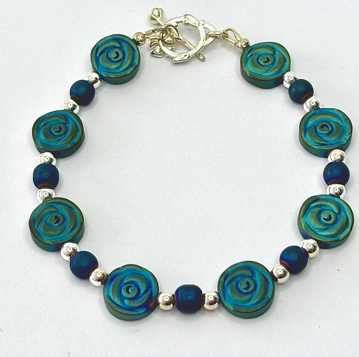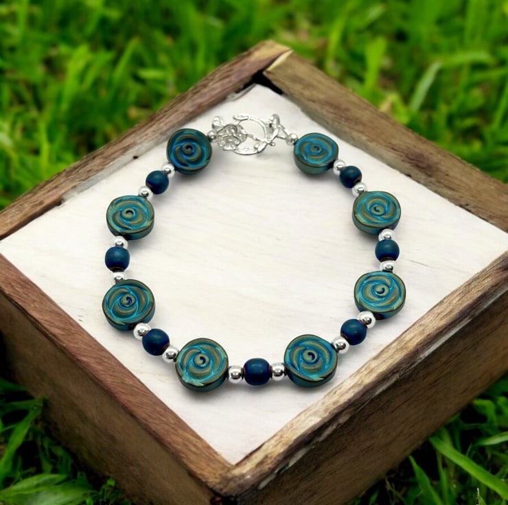 Blue Rose Hematite Bracelet