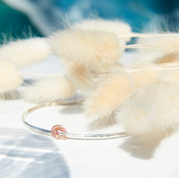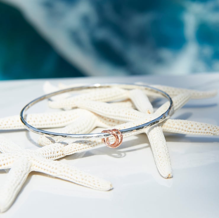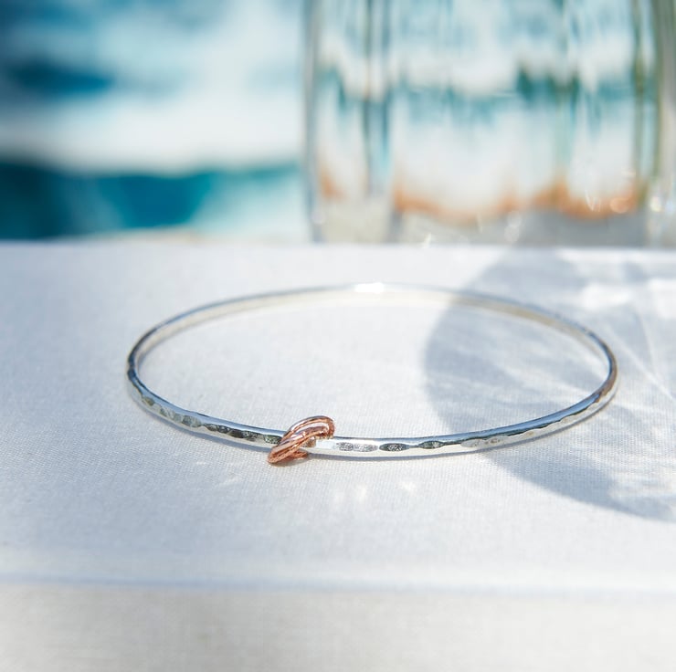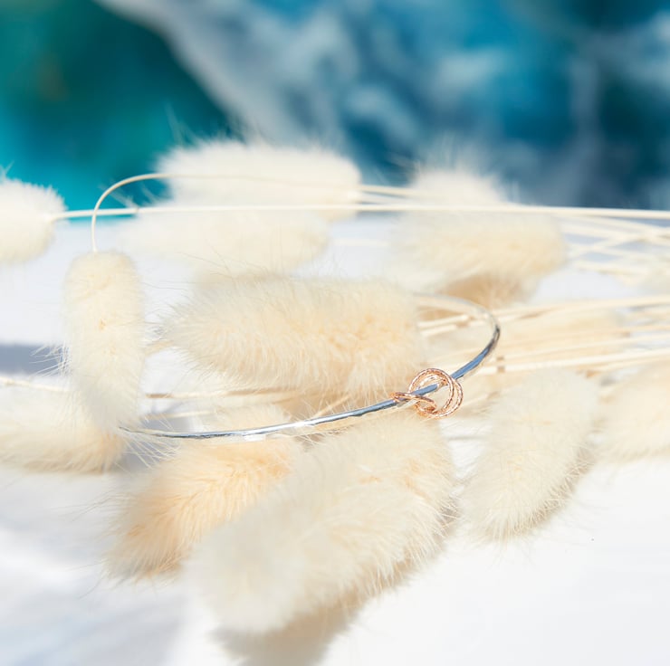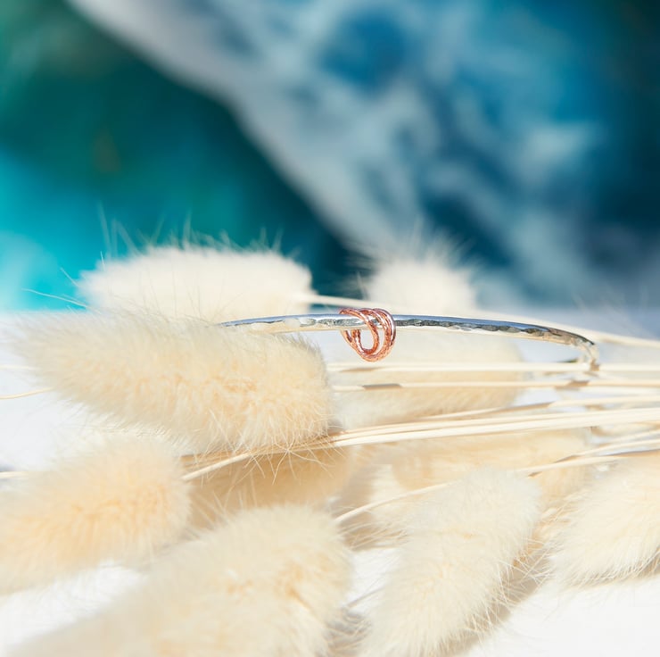 The beauty of artisan craftmanship an elegant Sterling silver bangle, handmade by SilverLines Jewellery in Woolacombe, North Devon. Featuring a beautiful hammered solid silver band, creating rich texture and timeless contemporary finish.
