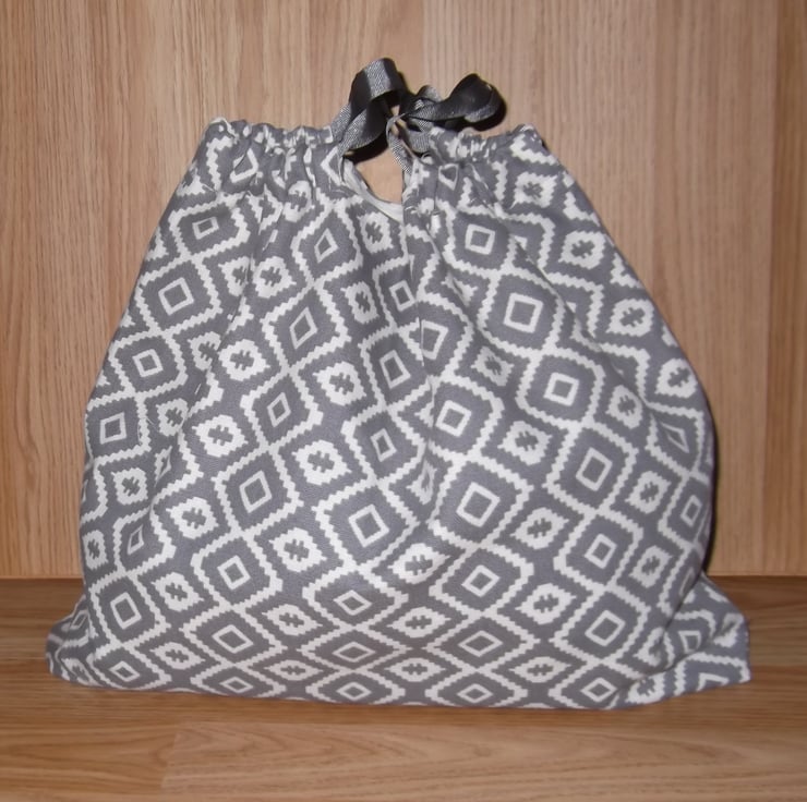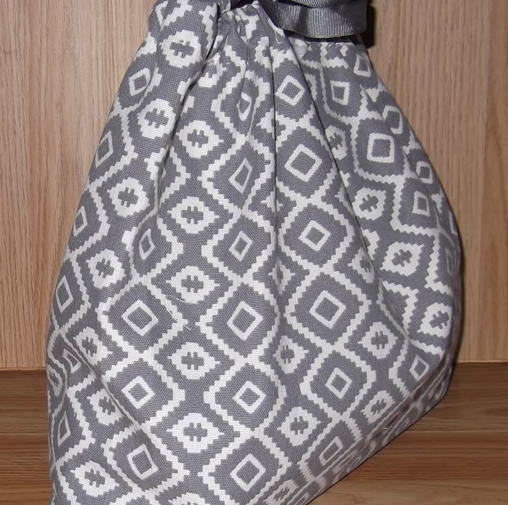 Bag Grey geo print Handy modern Shopper. Handmade. One off