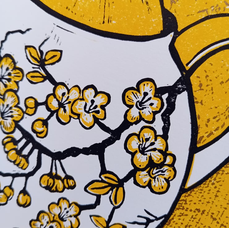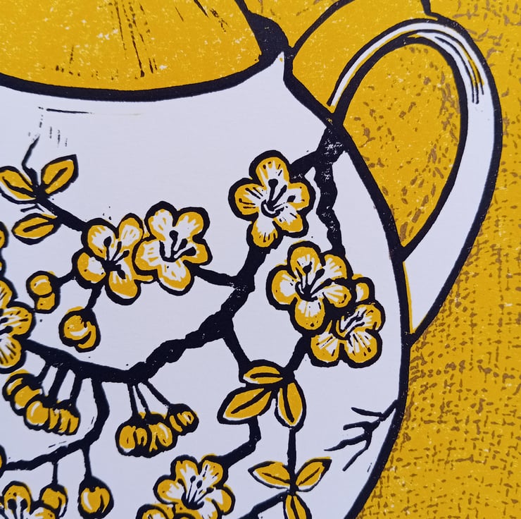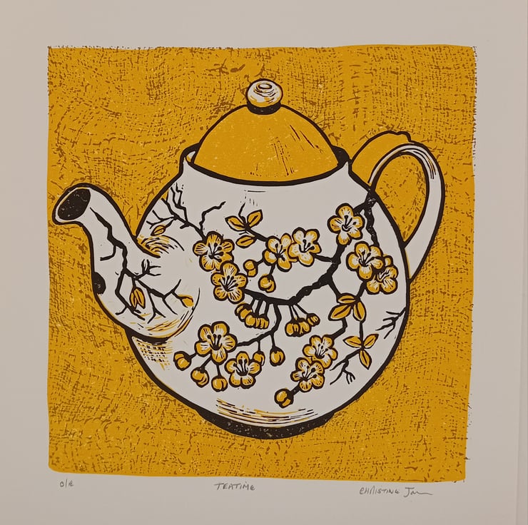 A multi block linocut print of a Teapot printed in a beautiful sunshine yellow. This has been my most popular colour of this edition of prints and is the last one remaining. (Other colours are still available)