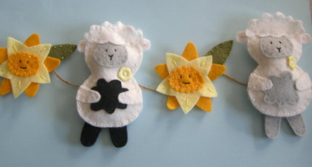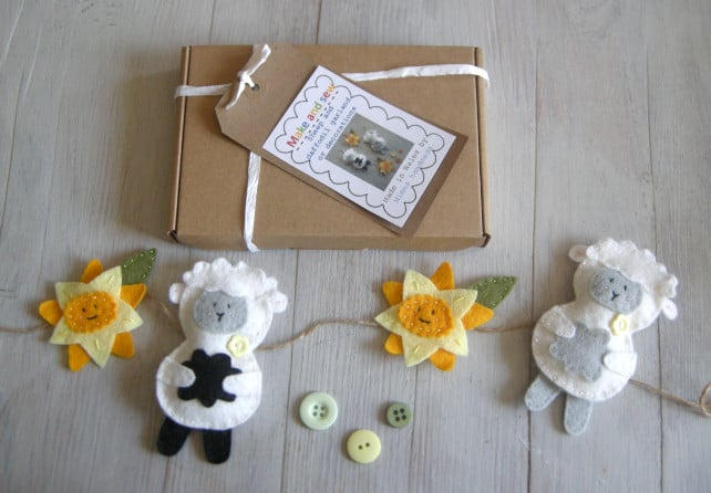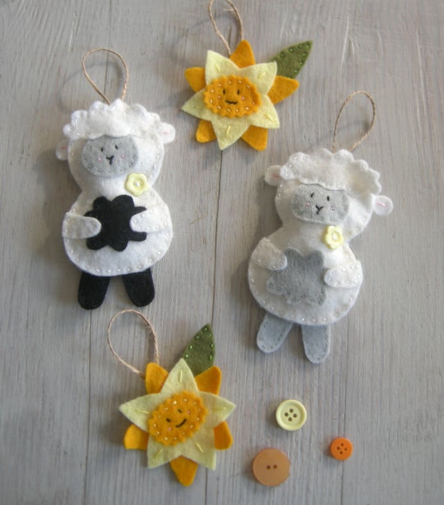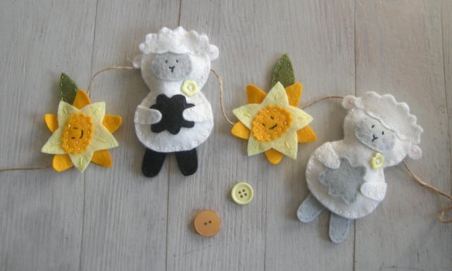 Make and sew a cute felt sheep and daffodil with this sewing kit. garland or individual decorations. The sewing kit would make a great gift for a crafter or treat yourself and once ithe garland is made would make a great Easter decoration.