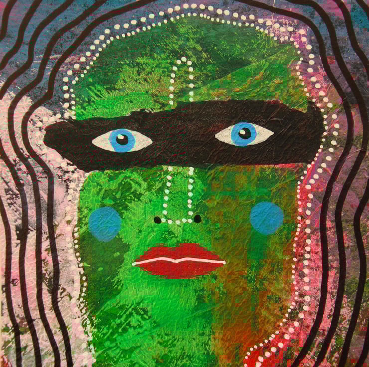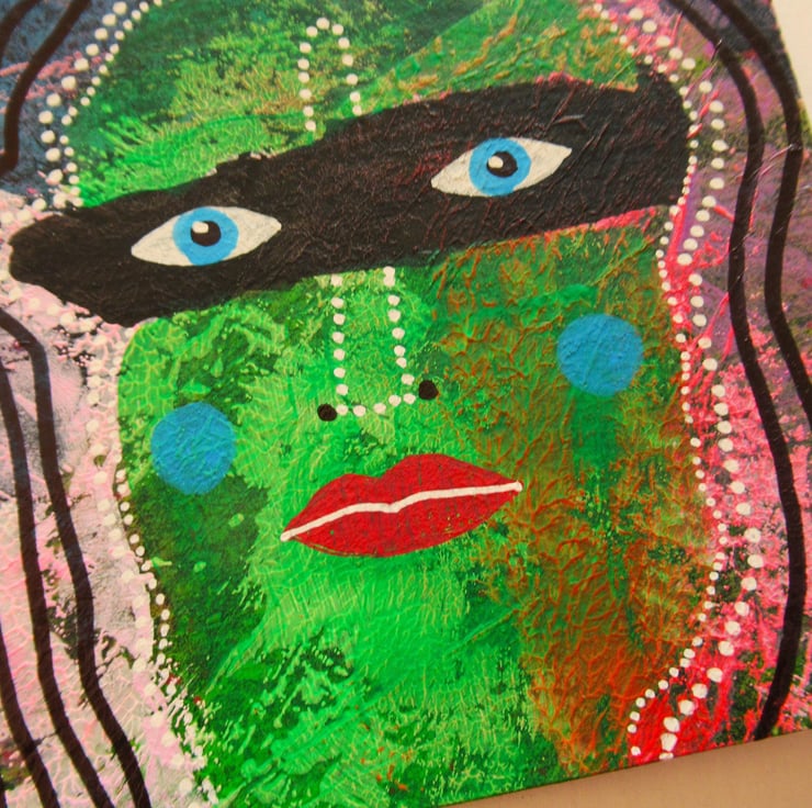 Weird miniature mixed media painting on heavy paper. In acrylic, collage and drawing pens, it has a soft sheen finish and it will be signed on the front by Bea before dispatch. Mini art is great to fill a space on a small wall or alcove, on a shelf, windowsill or mantelpiece and they also make ideal affordable original art gifts. Display singly, group with other miniatures or place in one frame with other miniatures for a larger artwork for the wall.