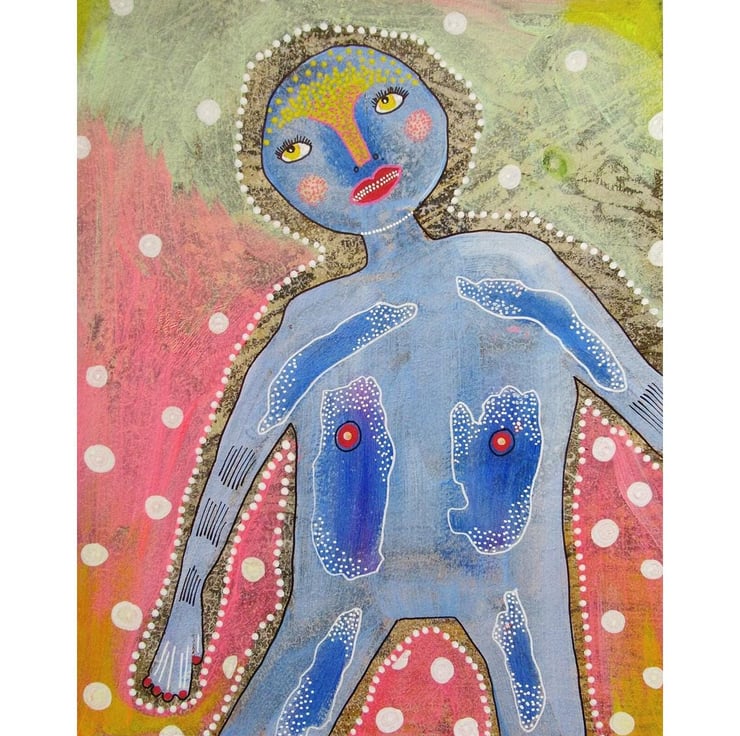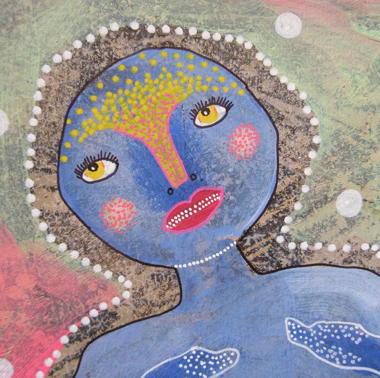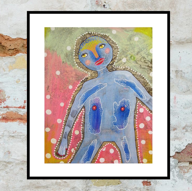 Quirky figure painting in acrylic and drawing pens on 8 x10 inch heavy watercolour paper. Colourful and unusual figurative original artwork, which is perfect to pop straight into any standard sized 8x10" frame or mount. Your artwork will be signed on the front by Bea before shipping and comes with a certificate of authenticity. (Artwork is unframed - framed photo is for illustration purposes only.)