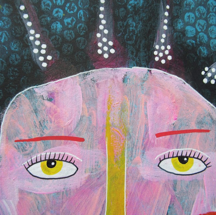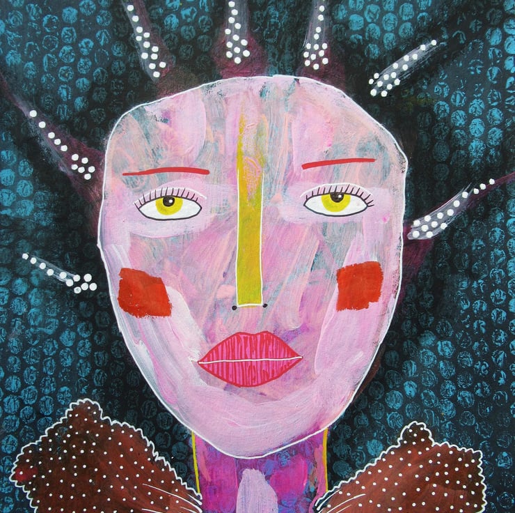 Quirky portrait painting / illustration in acrylic and drawing pens on light black card. Measuring 8 x 10 inches, so perfect to slip straight into any standard 8 x 10" frame (or mount.) It will be hand signed on the front by Bea before shipping and it comes to you unframed. (Framed photo is for illustrative purposes only.)