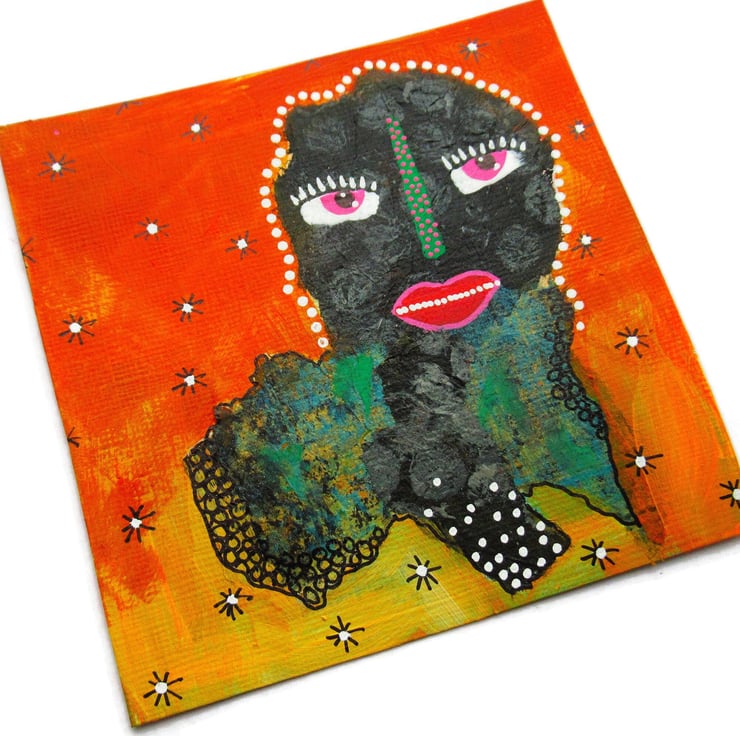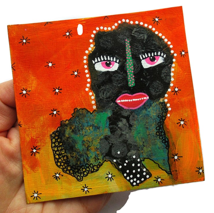Quirky small / miniature mixed media painting on heavy specialist acrylic paper. In acrylic and drawing pens, this artwork has a soft sheen surface finish and it will be hand signed on the front by Bea before dispatch. These mini original artworks are great to fill a space on a small wall or alcove, on a shelf, windowsill or mantelpiece and they also make ideal affordable original art gifts. Display singly, group with other miniatures or place in one larger frame with others.