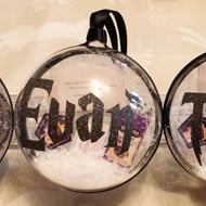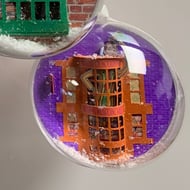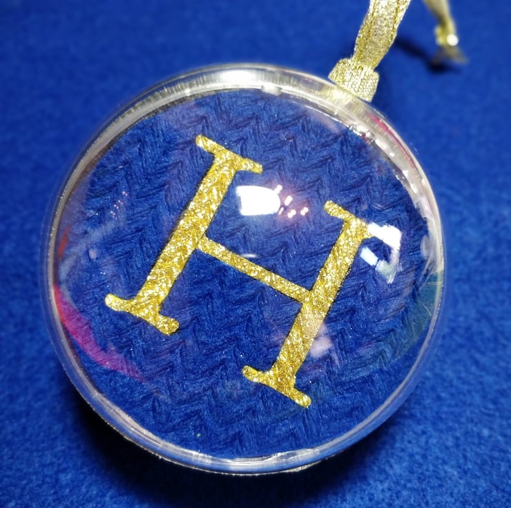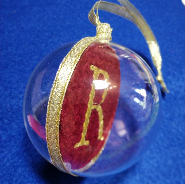 Inspired by Mrs Weasley's Christmas knits, this handmade bauble is double-sided and finished with gold ribbon.