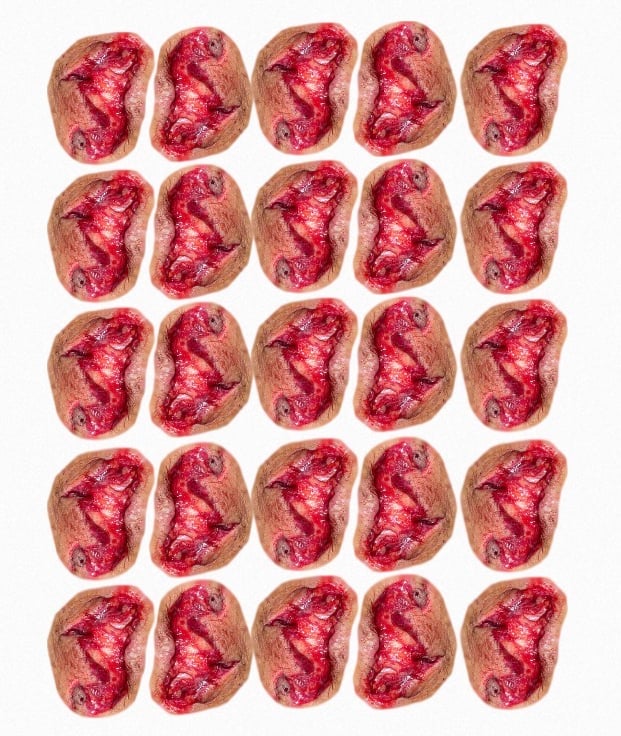 Printed onto a transparent vinyl means they are as realistic as they can be without having to use any sort of fake blood.