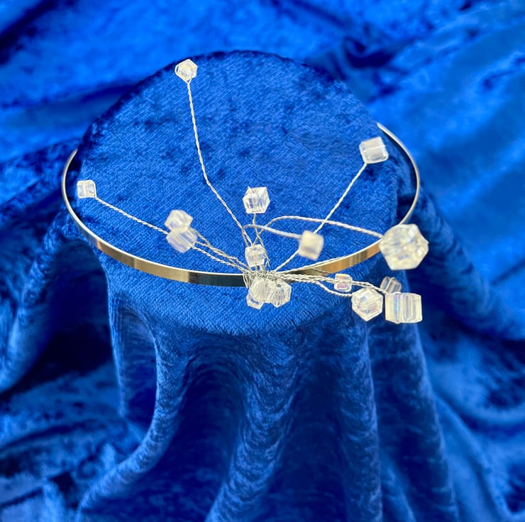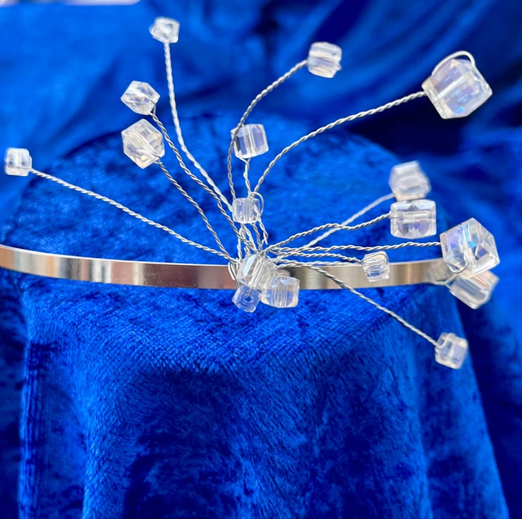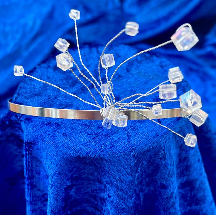 Simple elegant headpiece for a bride, bridesmaid or prom. Mademade and handcrafted from top quality crystal cubes, on a silver band.