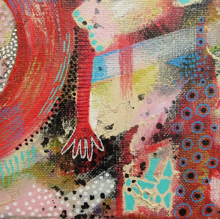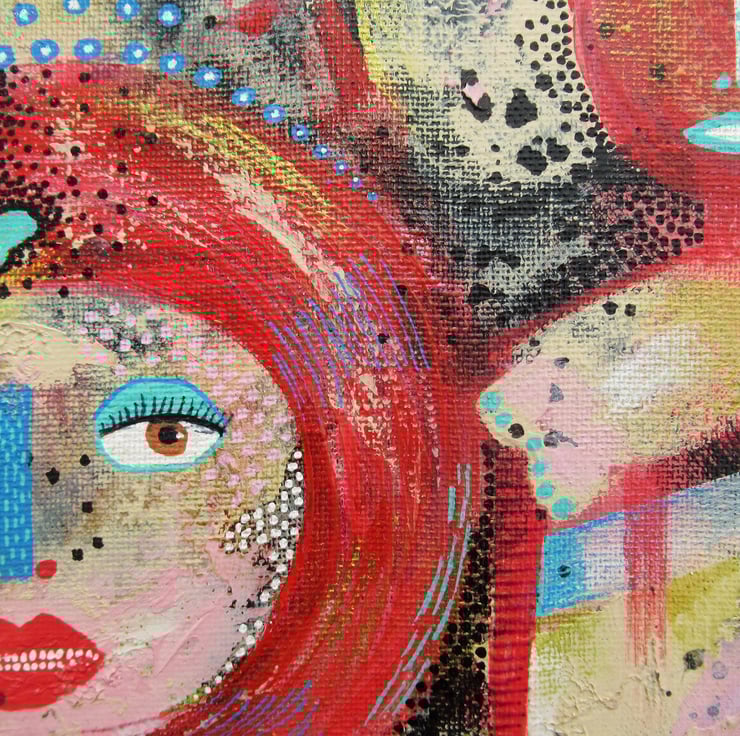 Small yet packing a punch - this acrylic abstract portrait painting on 8 x 10 inch stretched canvas with painted edges, so no framing is necessarily required. Alternatively, simply pop straight into an 8 x 10 inch frame of your choice. Unusual and attractive statement wall art which will sit beautifully on a small wall or in any bijoux interior. It is signed on the edge by Bea and has a soft sheen surface finish.