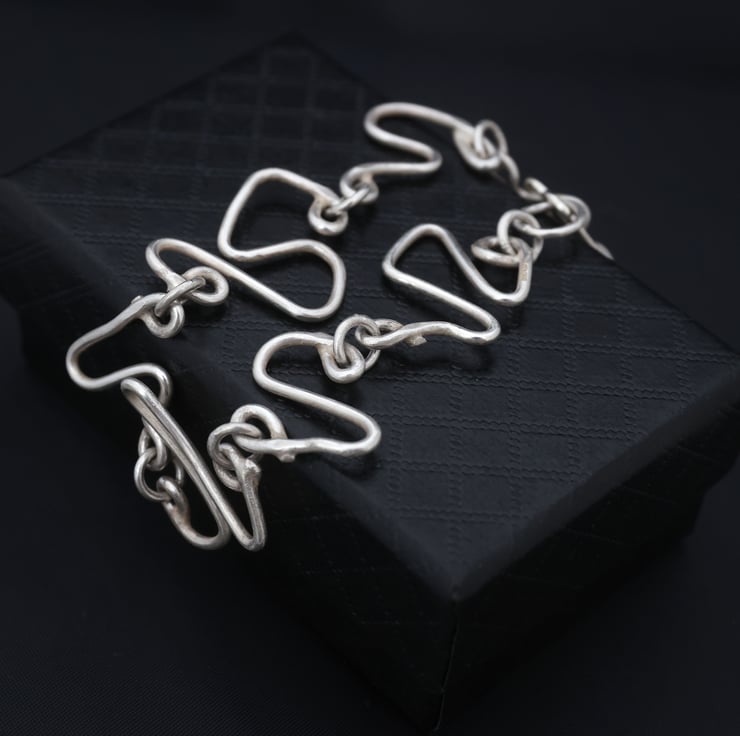 This is a unique, hallmarked sterling silver organic style bracelet. It’s inspired by the art nouveau movement and organic forms in nature.