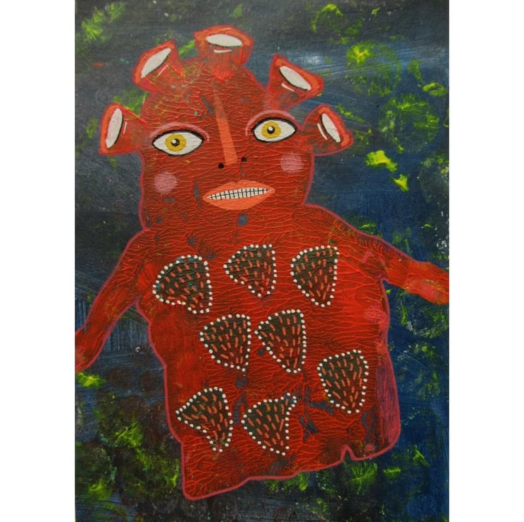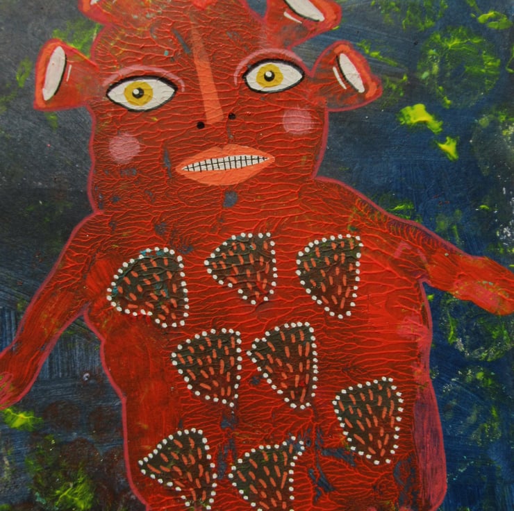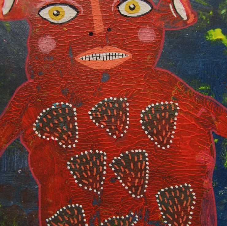 Quirky, smaller format mixed media figure painting in acrylic, collage and drawing pens on 5 x 7 inch light card. Quirky, unusual, alternative original art which is unframed but the perfect size to place straight into any standard sized 5x7" frame or mount. It will be hand signed on the front by Bea before shipping. Small and miniature artworks are an affordable way to grow your original art collection, they are perfect for grouping on a wall, and also make brilliant arty gifts. (Framed photo is for illustration purposes only.)