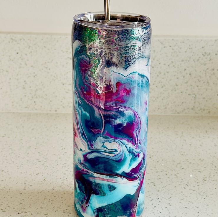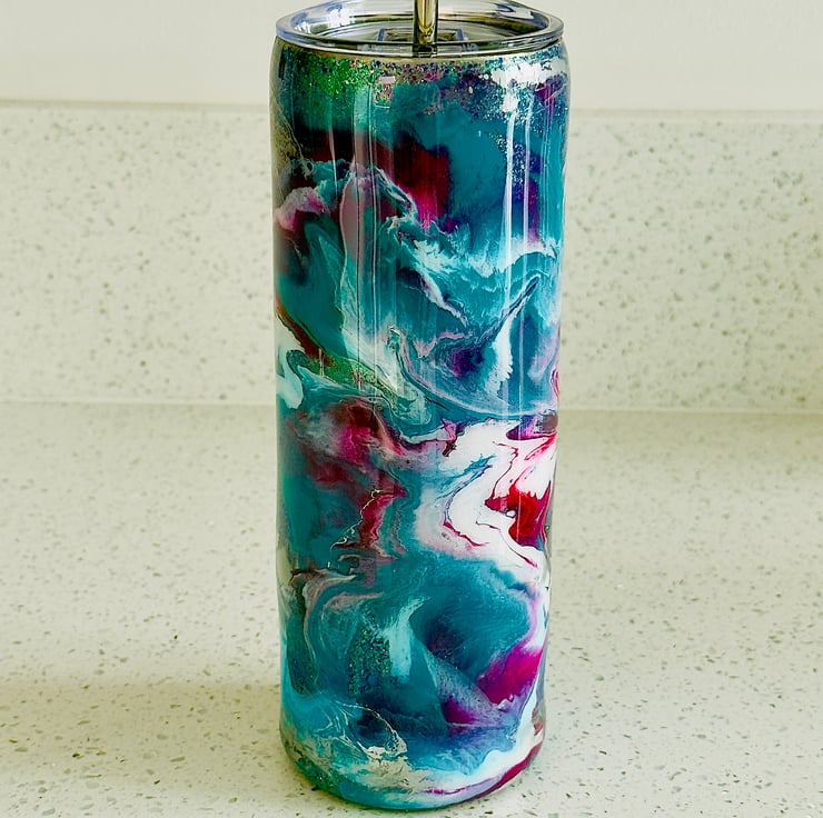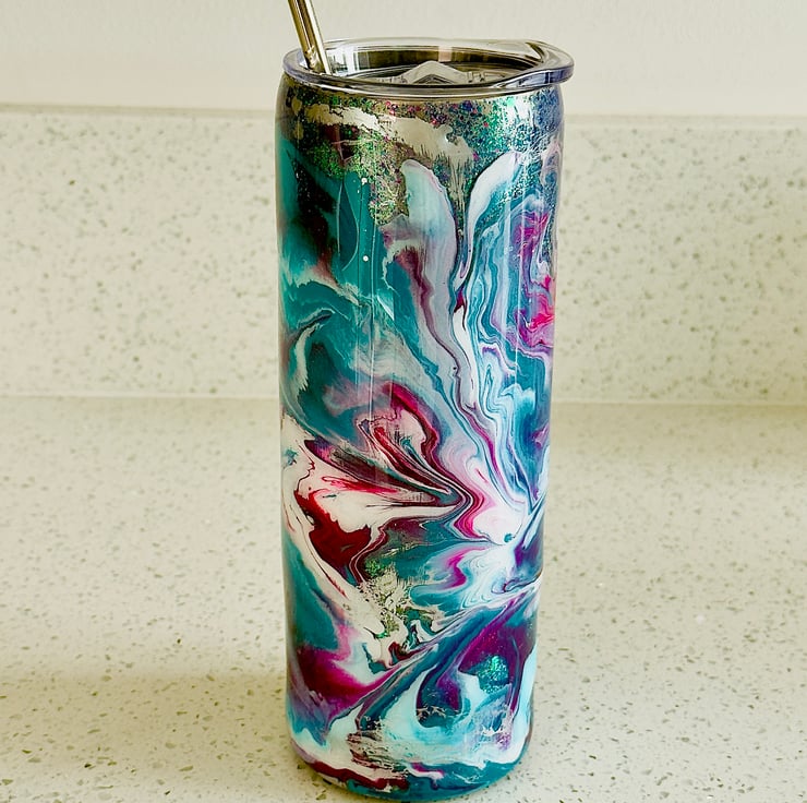 Tumbler is unique would be great for a gift or to just treat yourself. Handcrafted with love, it combines durable stainless steel with stunning resin art, making each piece truly one of a kind. Perfect for keeping your drinks hot or cold, this stylish tumbler complements any lifestyle. At Made With Love by Sue, we believe in creating products that bring joy and add a personal touch to everyday moments.