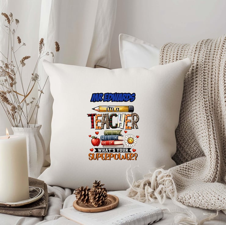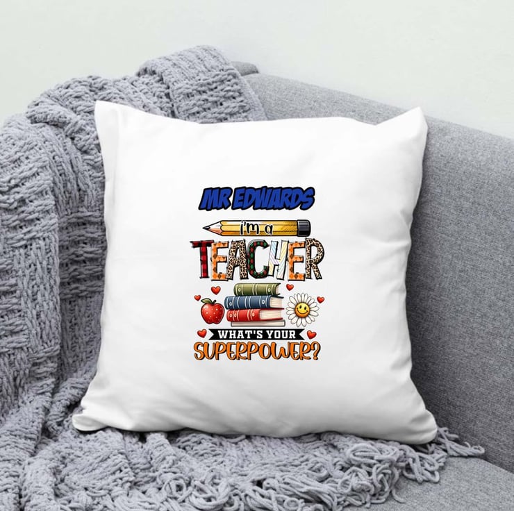 "I'm a Teacher, What's Your Superpower?" this cushion cover is both stylish and meaningful.