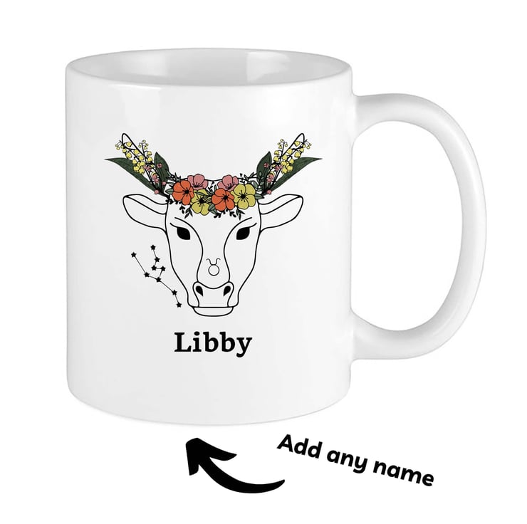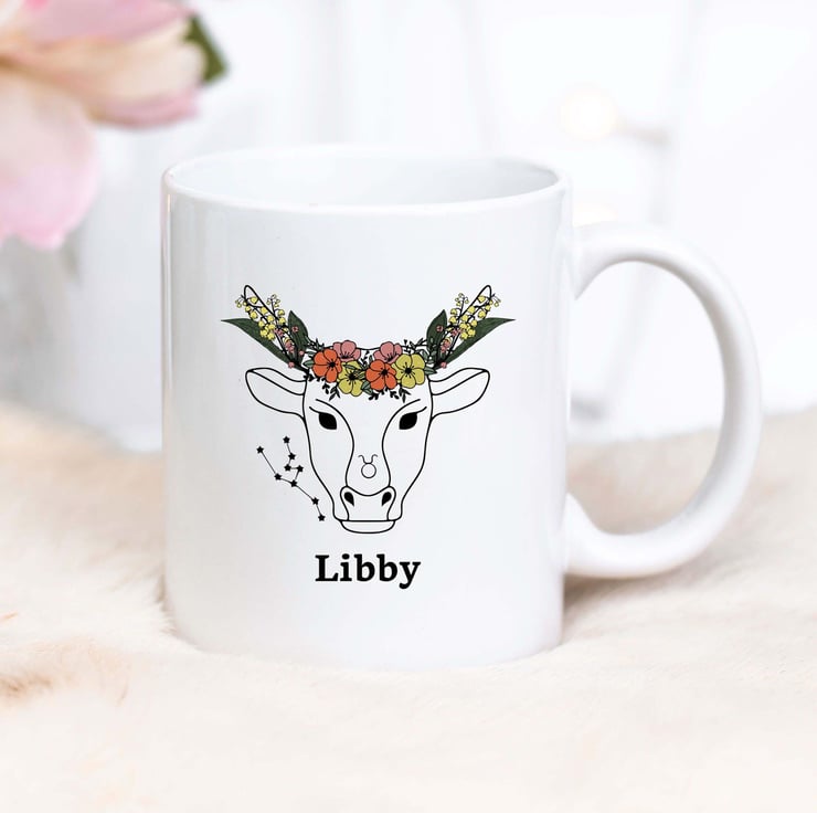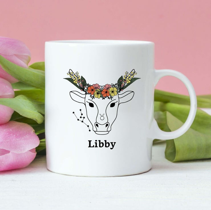 The Taurus star sign is elegantly brought to life with floral artwork, reflecting the sign s earthy nature and love for all things cosy and aesthetic. Add a custom name for a personal touch, creating a one-of-a-kind gift they'll use and cherish daily.
