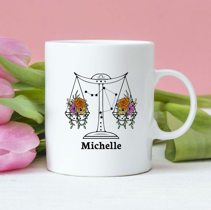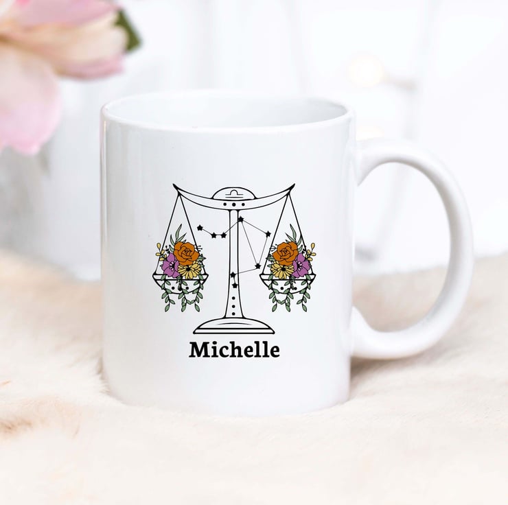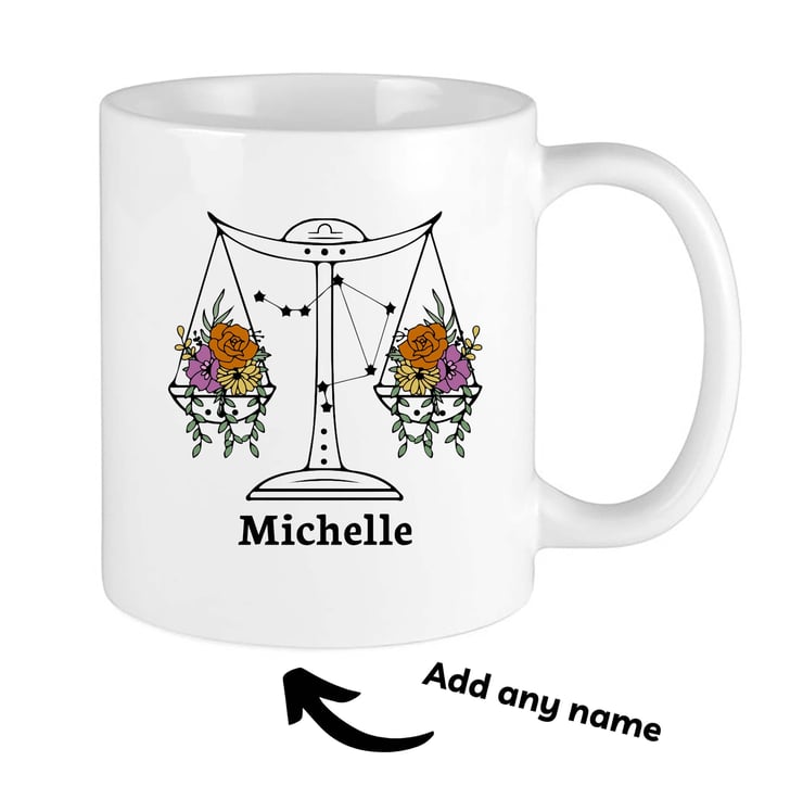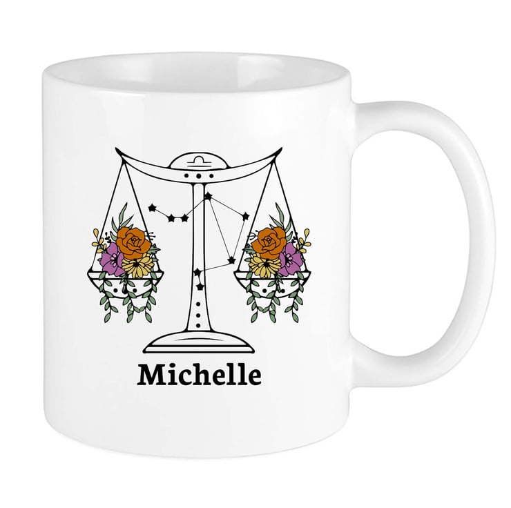 The Libra design features soft, graceful floral details that reflect the sign s love for harmony and aesthetics. Add a custom name to make this mug a truly personal gift that s as unique as the Libra in your life.
