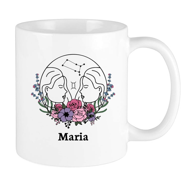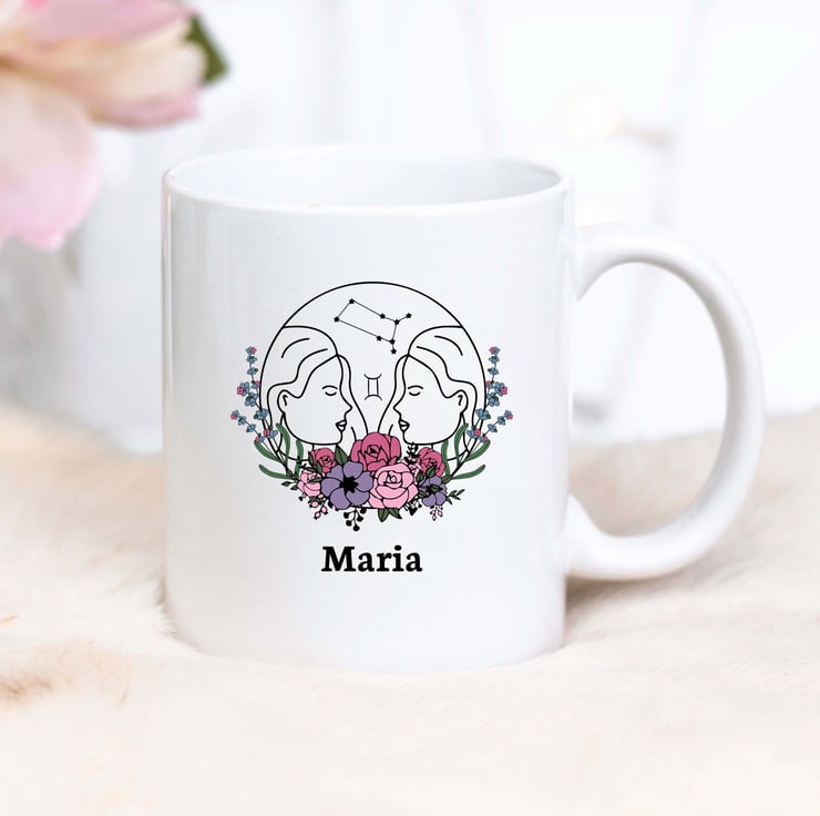 The Gemini design is thoughtfully crafted with floral elements, offering a fresh, modern twist on the traditional zodiac symbol. To make this gift even more special, you can add a name to the mug, making it personalised and one-of-a-kind.