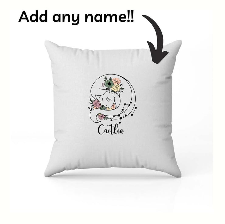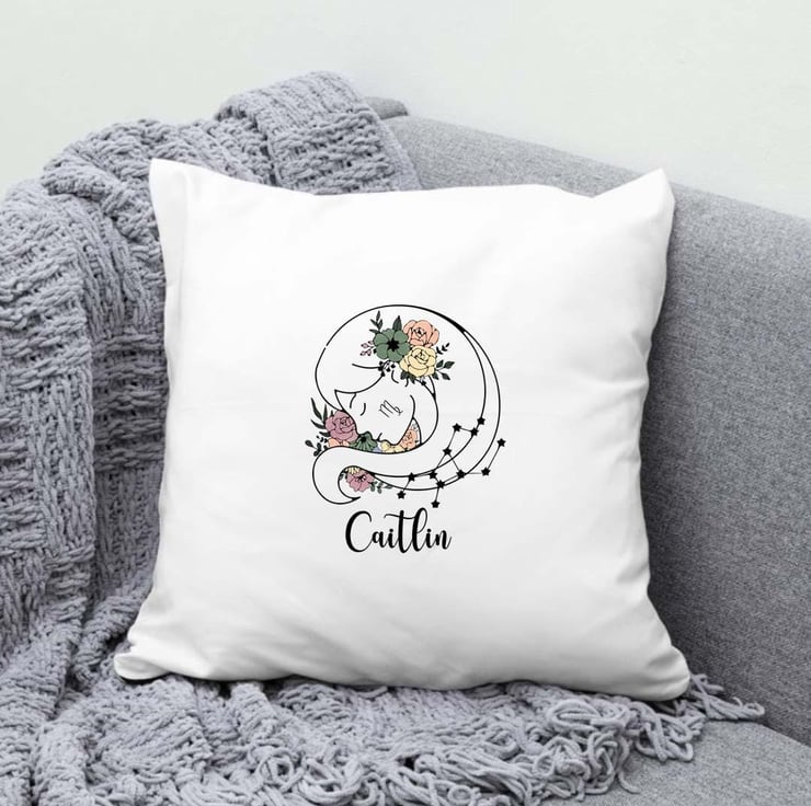Celebrate the thoughtful, practical, and detail-oriented Virgo in your life with this beautifully crafted personalized Virgo cushion cover! Featuring an elegant Virgo star sign symbol (The Virgin) intertwined with a delicate floral design, this stunning pillow cover adds a unique astrological touch to any home decor.