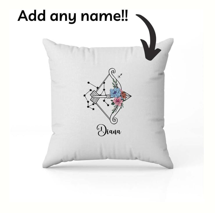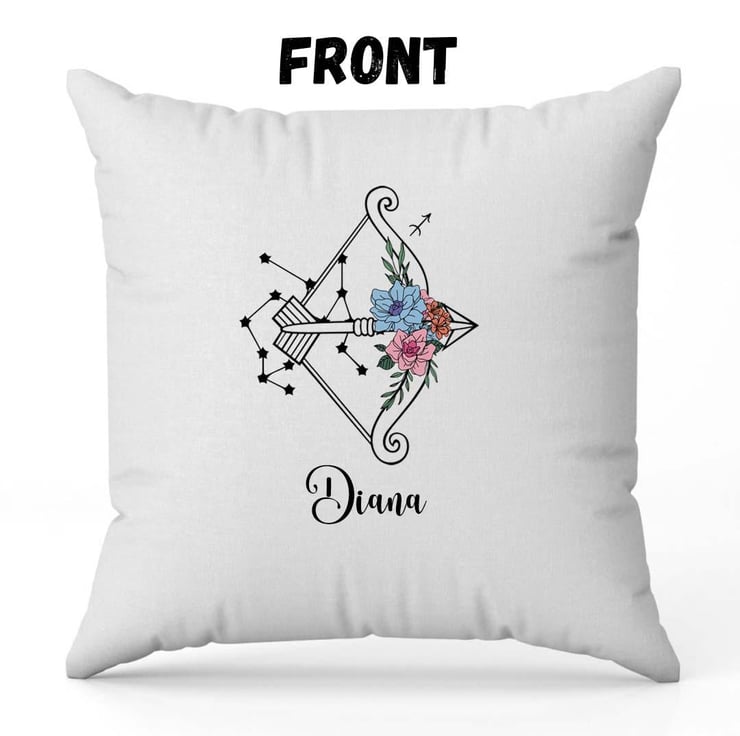 Celebrate the free-spirited and adventurous nature of Sagittarius (Nov 22 - Dec 21) with this beautifully crafted personalised cushion cover. Designed with the iconic bow and arrow symbol, elegantly intertwined with delicate floral elements, this unique piece makes a perfect gift for astrology lovers.
