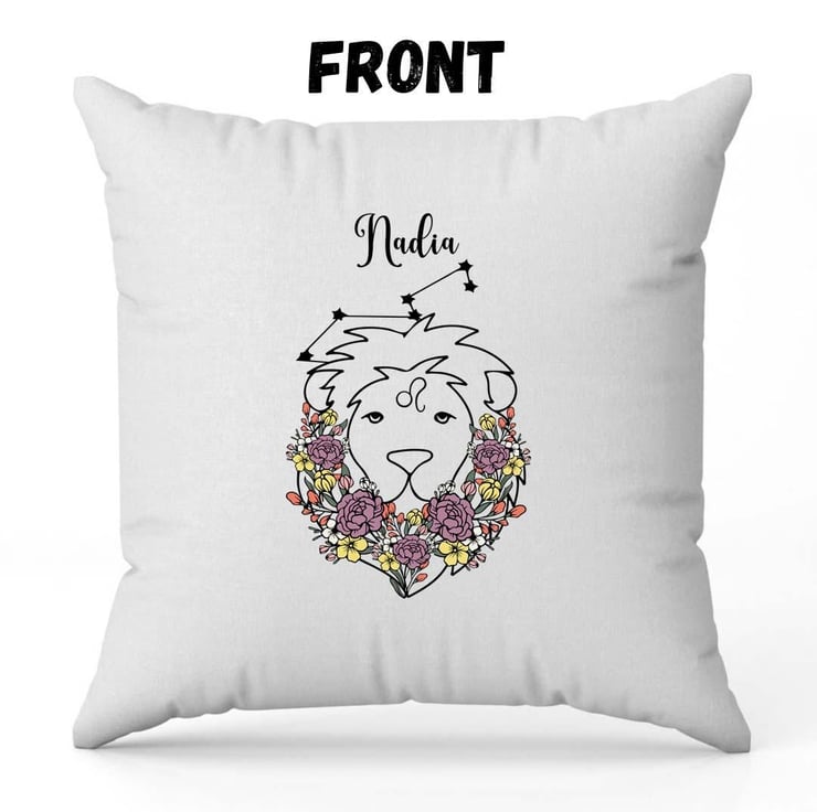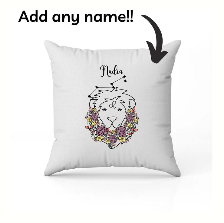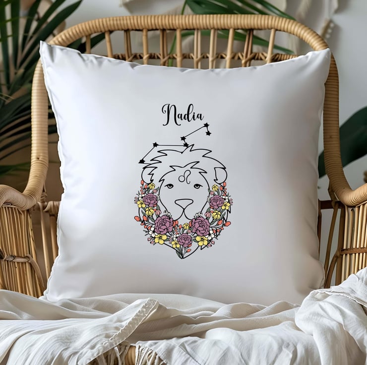 Celebrate the bold, confident, and passionate energy of the Leo star sign with this beautifully designed personalised cushion cover. Featuring a stunning illustration of a majestic lion adorned with delicate floral accents, this elegant and stylish piece is the perfect way to honour the Leo personality.