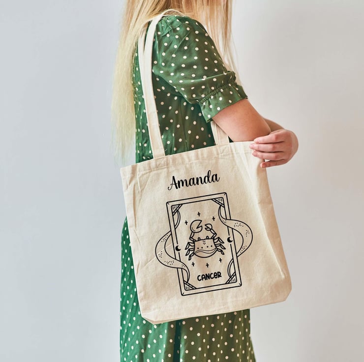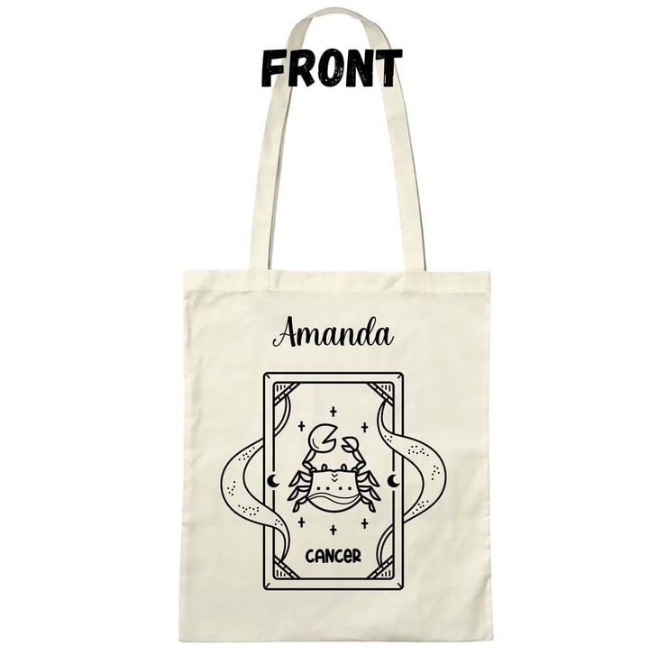 Celebrate individuality and creativity with this beautifully designed natural cotton tote bag, featuring a striking Cancer illustration. Perfect for astrology lovers, this versatile bag combines style and function with its eco-friendly, durable material and spacious design. Add a personal touch by customising it with any name, making it an ideal gift for birthdays, special occasions, or as a thoughtful keepsake. Whether for everyday use, shopping, or as a unique statement piece, this tote bag is both practical and meaningful, perfect for anyone who embodies the Cancer star sign spirit.