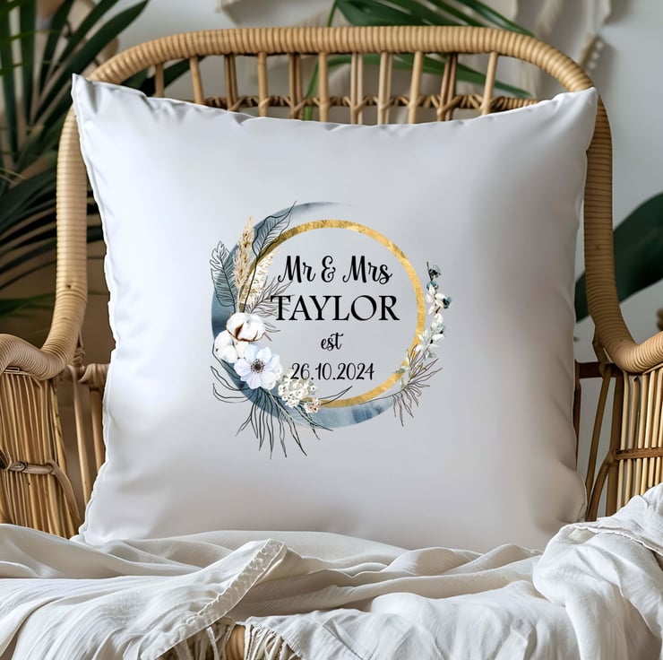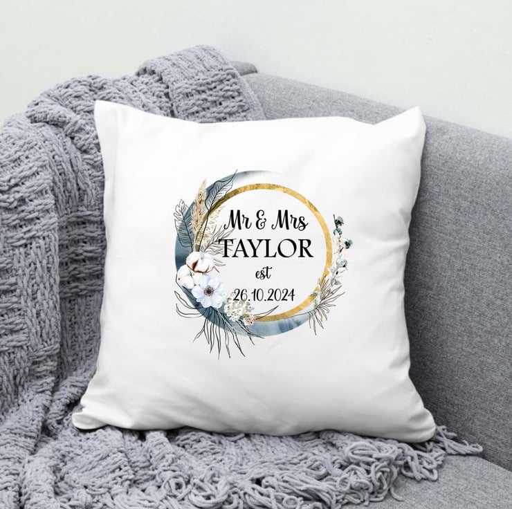 Boho Moon Wedding cushion personalised, Mr and Mrs gift, custom wedding present