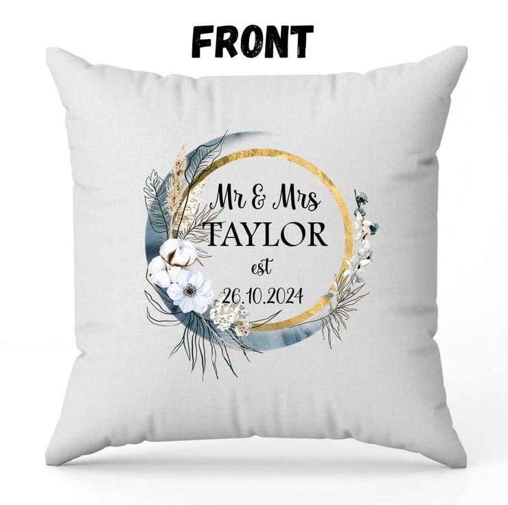 Enhance your wedding decor with our Personalized Wedding Date Cushion Cover. This elegant Mr & Mrs keepsake gift is a beautiful way to celebrate your special day. Made with high-quality materials, this cushion cover is a unique and cherished addition to any home. Perfect for anniversaries, weddings, or as a thoughtful gift for newlyweds. Don't miss out on commemorating your love with this timeless piece!
