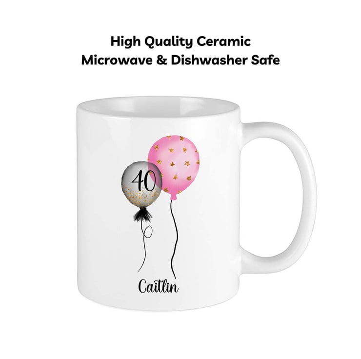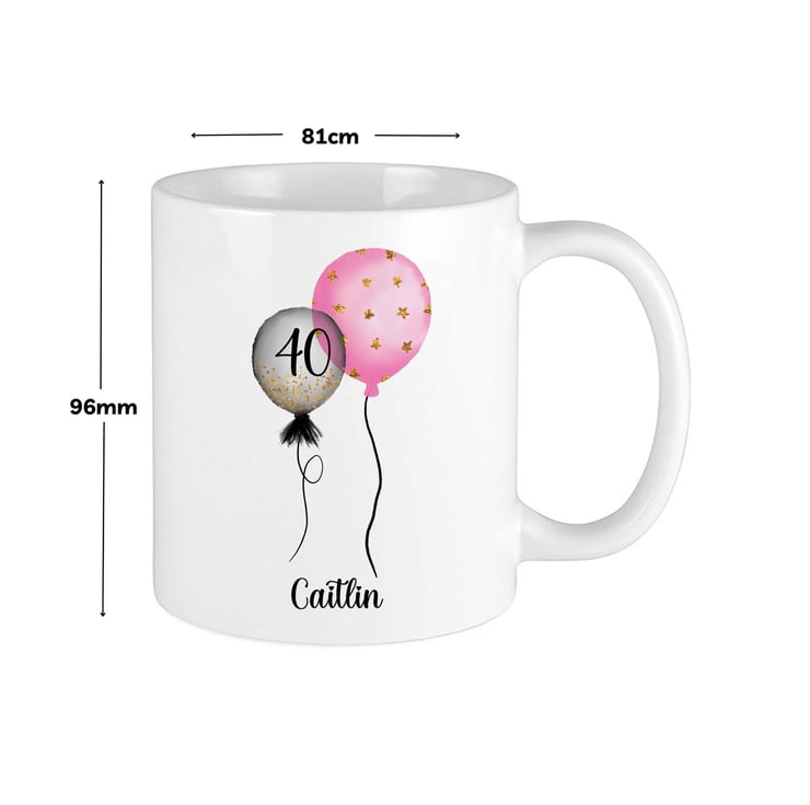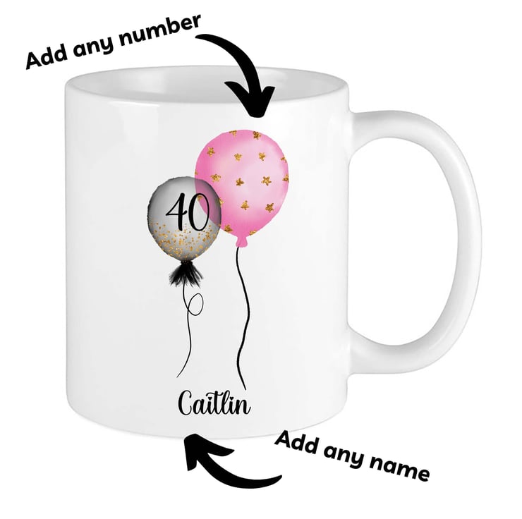 Celebrate birthdays in style with this charming personalized mug! Featuring two colorful balloons that can be customized with any number, this mug is the perfect gift for milestone birthdays, from 1 to 100 and beyond! Add a personal touch by including the recipient's name, making it a truly special keepsake.