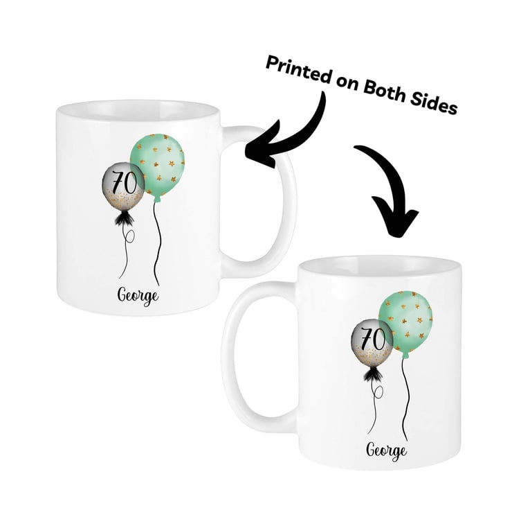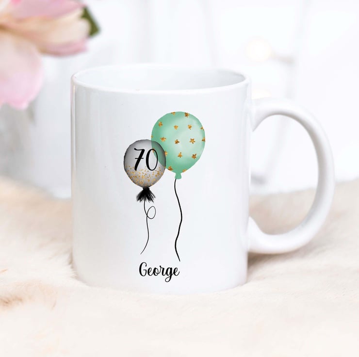 Celebrate birthdays in style with this charming personalized mug! Featuring two colorful balloons that can be customized with any number, this mug is the perfect gift for milestone birthdays, from 1 to 100 and beyond! Add a personal touch by including the recipient's name, making it a truly special keepsake.
