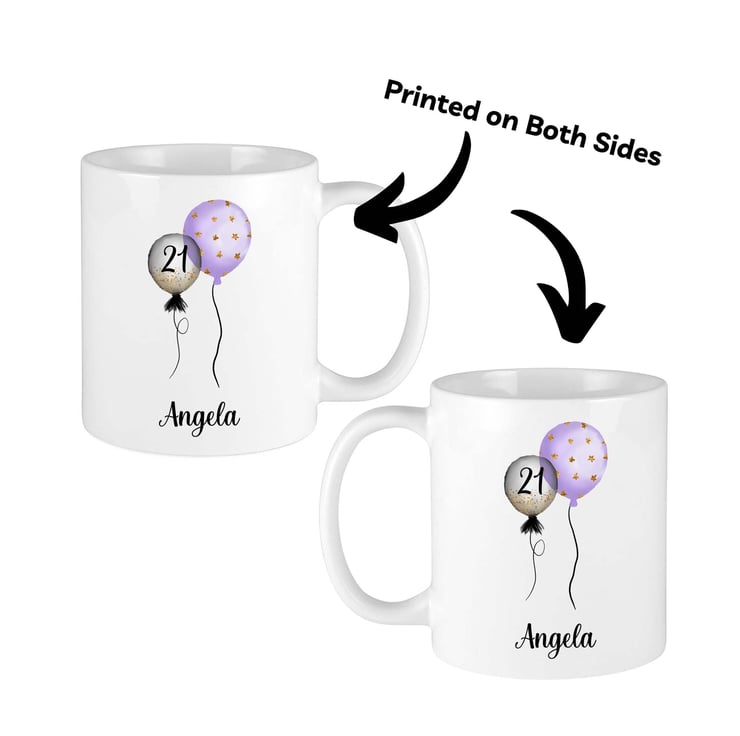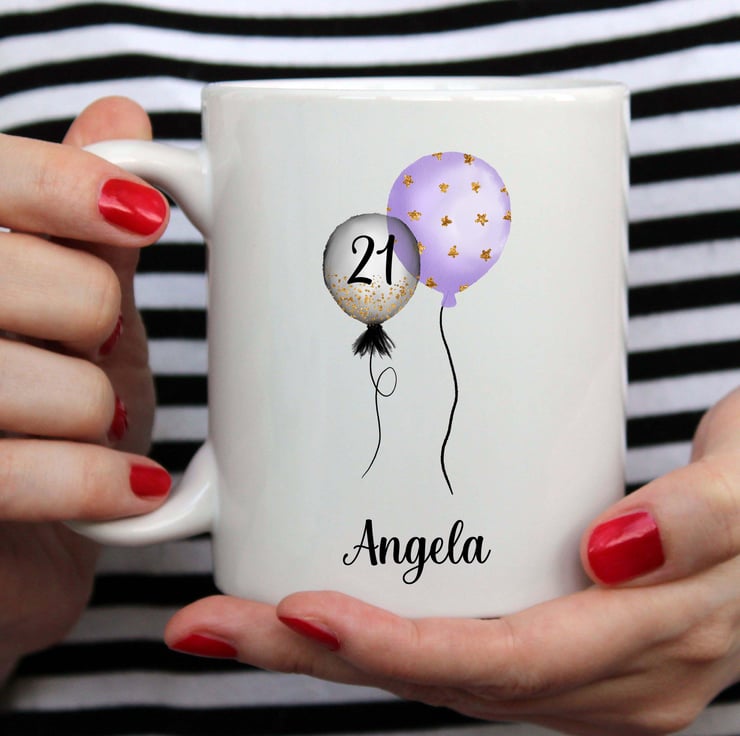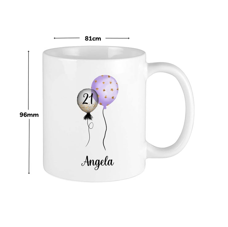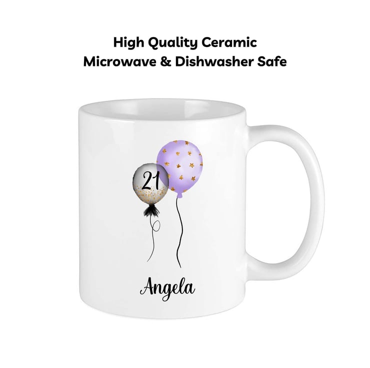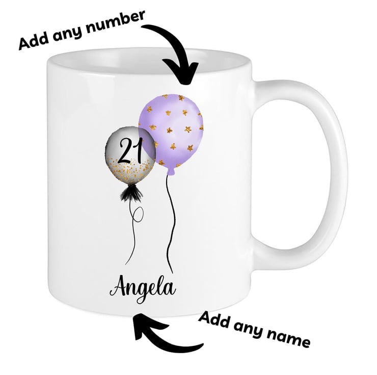 Personalised Birthday Mug, Purple Balloons,21st, 30th,40th,50th,60th,70th,80th