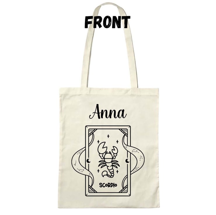 Celebrate intensity and transformation with this beautifully designed natural cotton tote bag, featuring a striking Scorpio illustration. Perfect for astrology lovers, this versatile bag combines style and function with its eco-friendly, durable material and spacious design. Add a personal touch by customising it with any name, making it an ideal gift for birthdays, special occasions, or as a thoughtful keepsake. Whether for everyday use, shopping, or as a unique statement piece, this tote bag is both practical and meaningful, perfect for anyone who embodies the passionate and mysterious spirit of the Scorpio star sign.