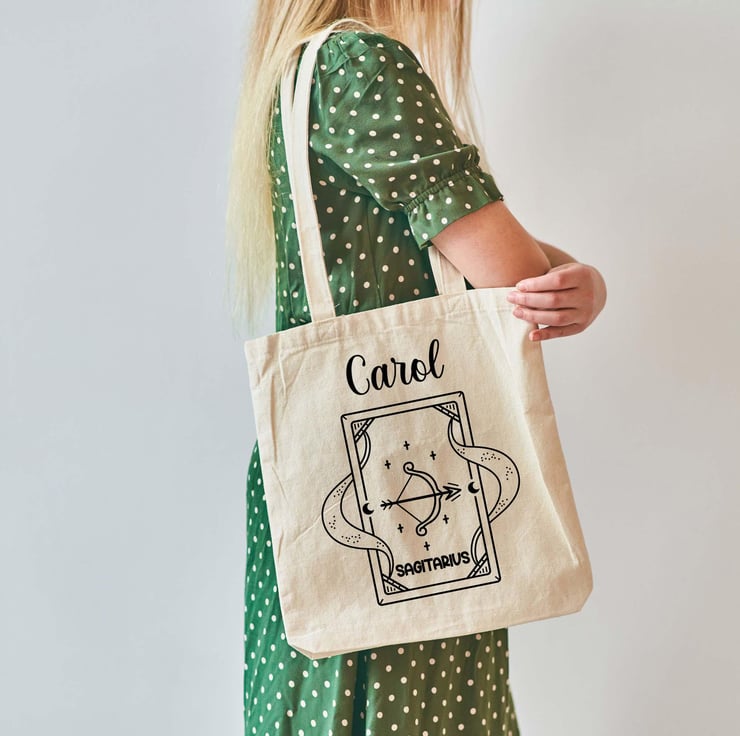 Celebrate individuality and adventure with this beautifully designed natural cotton tote bag, featuring a striking Sagittarius illustration. Perfect for astrology lovers, this versatile bag combines style and function with its eco-friendly, durable material and spacious design. Add a personal touch by customizing it with any name, making it an ideal gift for birthdays, special occasions, or as a thoughtful keepsake. Whether for everyday use, shopping, or as a unique statement piece, this tote bag is both practical and meaningful, perfect for anyone who embodies the free-spirited and optimistic Sagittarius energy.