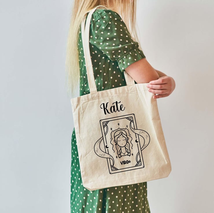 Celebrate practicality and reliability with this beautifully designed natural cotton tote bag, featuring a striking Virgo illustration. Perfect for astrology lovers, this versatile bag combines style and function with its eco-friendly, durable material and spacious design. Add a personal touch by customizing it with any name, making it an ideal gift for birthdays, special occasions, or as a thoughtful keepsake. Whether for everyday use, shopping, or as a unique statement piece, this tote bag is both practical and meaningful, perfect for anyone who embodies the Virgo star sign spirit.