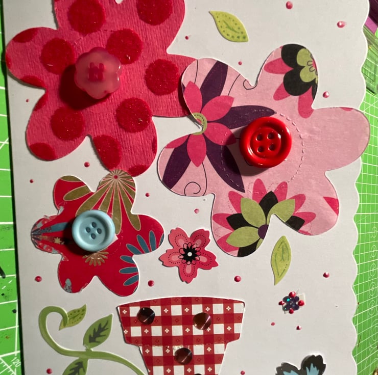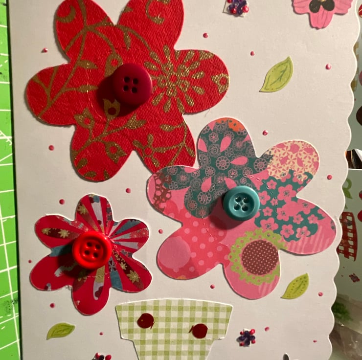 One hand crafted card in a ‘ Floral’ theme. Envelope included.