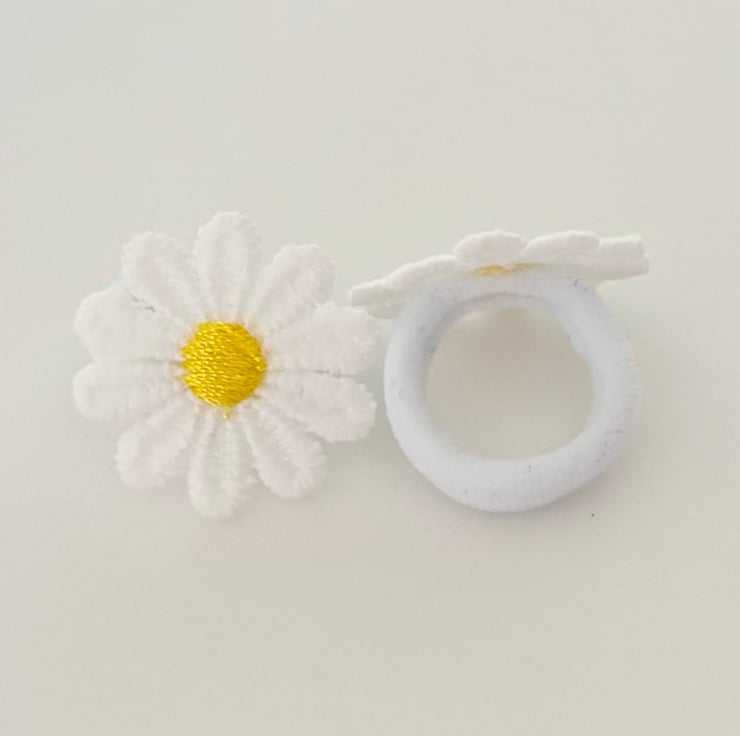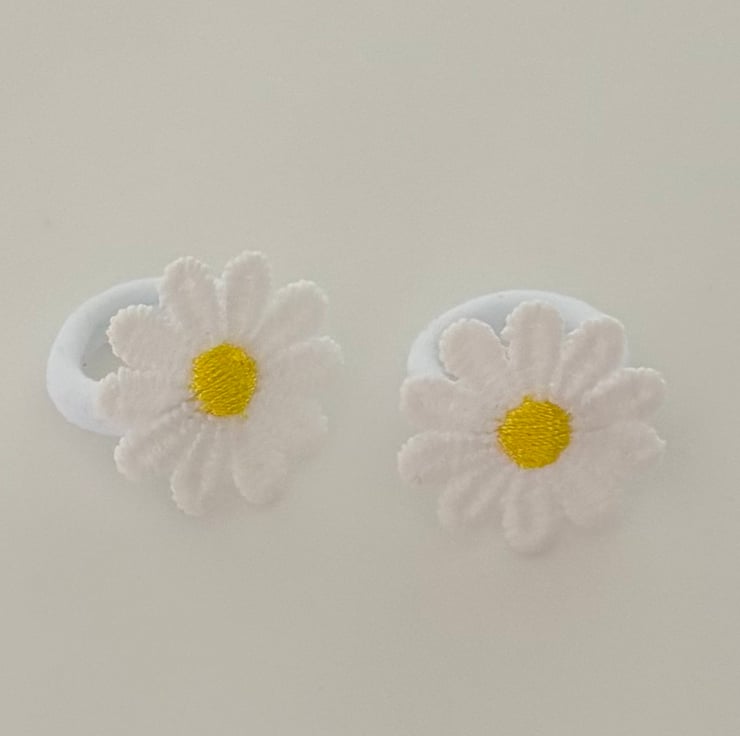 Handmade White and Yellow cotton sewn daisy flowers, set on white and Yellow mini bands for a soft comfortable hold.