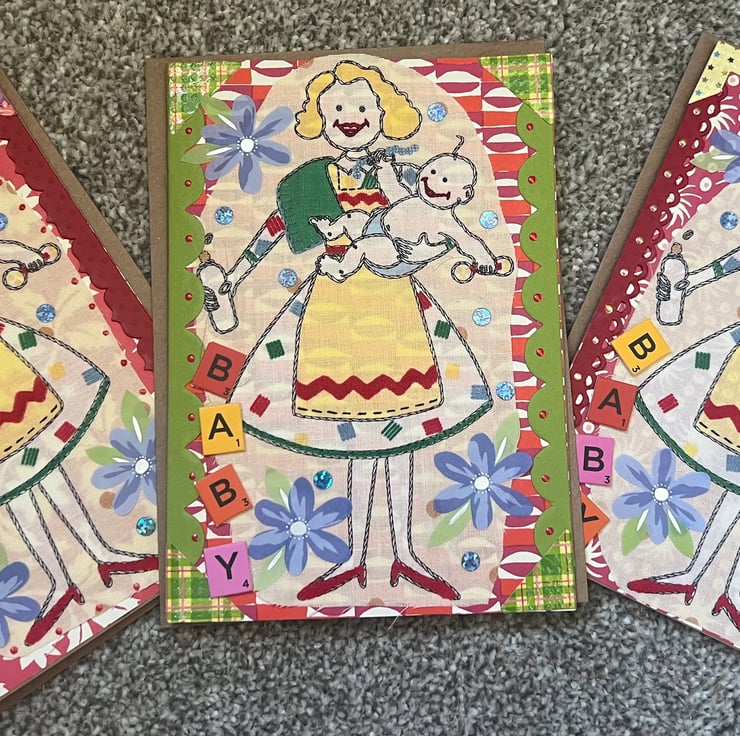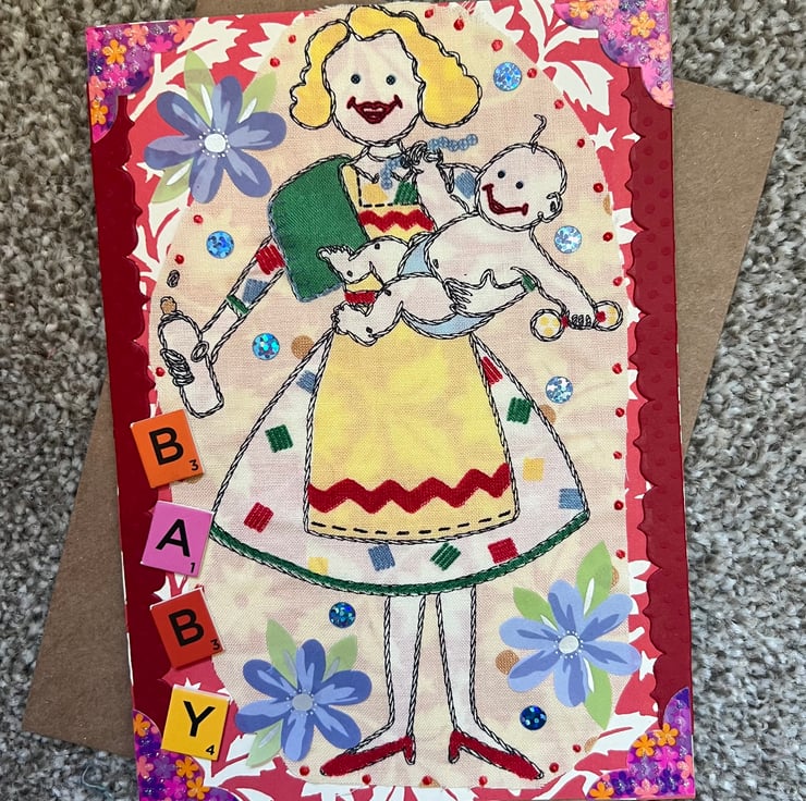 One hand crafted card in a Baby theme. Envelope included.