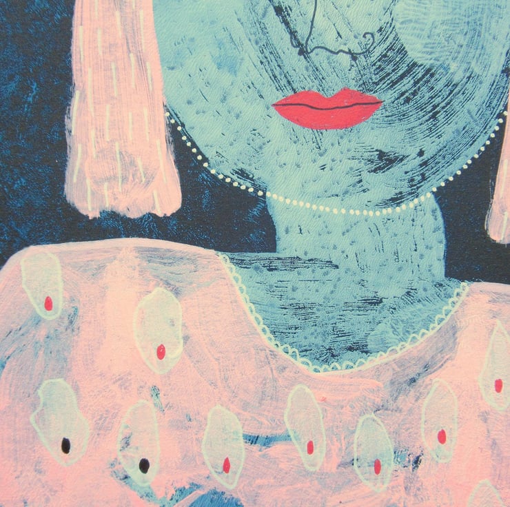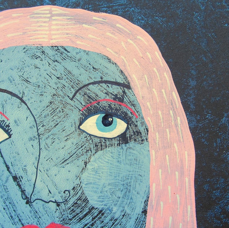 Original female portrait painting in acrylic and drawing pens on 8 x 10 inch light black card. This beautiful original figurative artwork would look lovely on any wall and fits perfectly into any standard 8 x 10 inch shop bought frame (or mount). It will be signed on the front by Bea before shipping. Framed photos are for illustration purposes only.