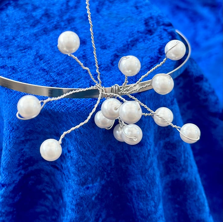 Wedding bride pearl tiara prom white fresh water pearls