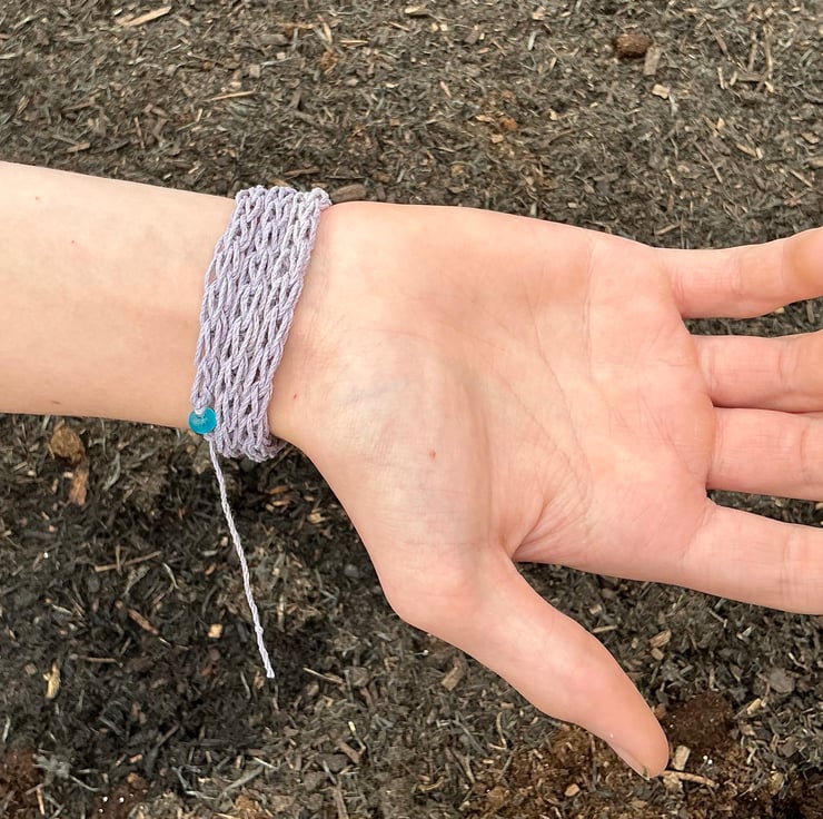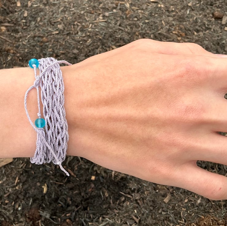 Hand Knitted Hemp Wrap Bracelet. Lavendar Bracelet.