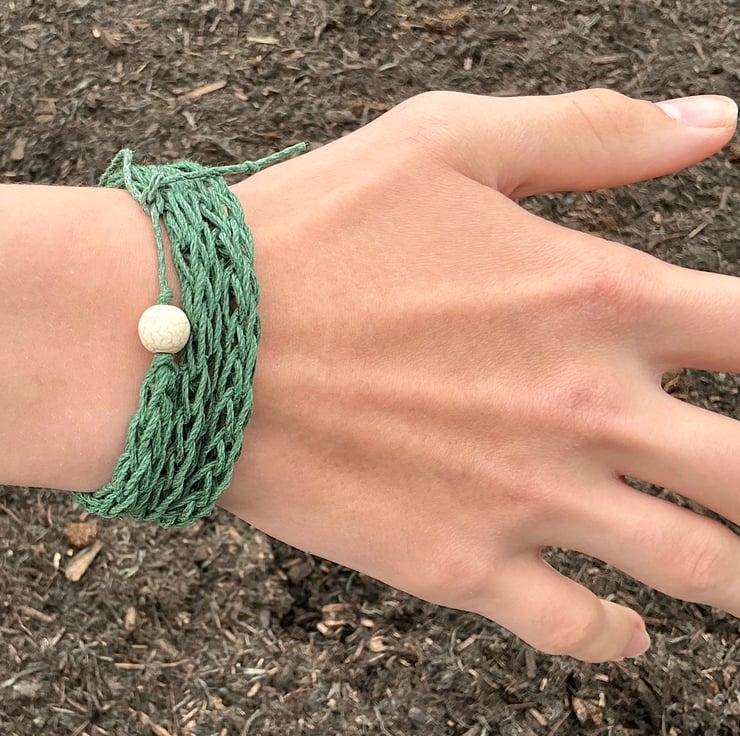 Hand Knitted Hemp Wrap Bracelet. Green Bracelet.