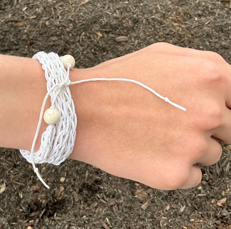 Hand Knitted Hemp Wrap Bracelet. White Bracelet.