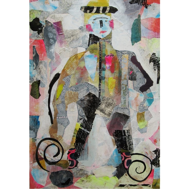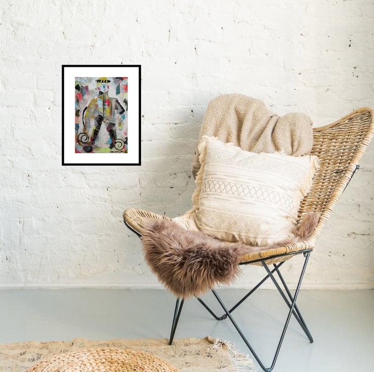 Collage & Acrylic combine in this quirky artwork on board. Measuring 10 x 14 inches with a soft sheen surface finish in gorgeous muted tones. It will be signed on the front by Beatrice before shipping and comes to you unframed. What an attractive and interesting artwork which would make an awesome focal point on any wall. (Framed photos are for illustration purposes only.)